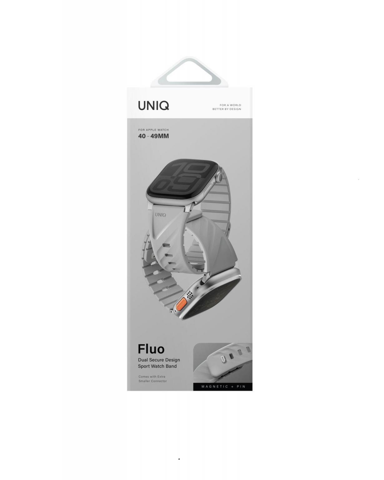 UNIQ Fluo spojuje flexibilitu, funkčnost a styl. Voděodolný materiál, bezpečné magnetické uchycení a minimalistický design vytvářejí řemínek, který je připraven držet s vámi krok v každé situaci.
