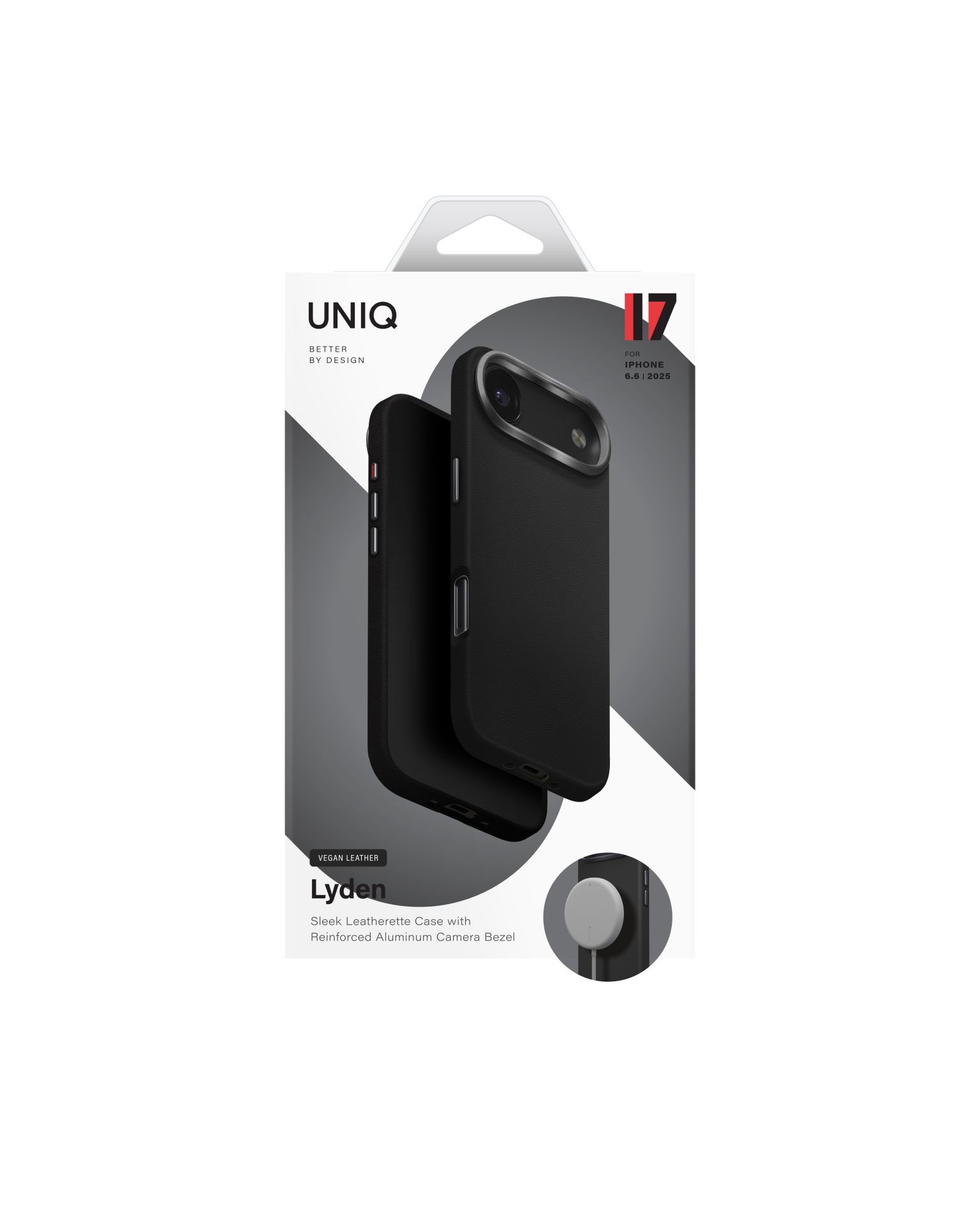 Lyden je prémiový ochranný kryt z veganské kůže, který kombinuje elegantní vzhled s každodenní ochranou. Nadčasový design doplňují hliníkové prvky kolem fotoaparátu a bočních tlačítek, zatímco měkká vnitřní mikrovláknová podšívka chrání telefon před poškrábáním při každém nasazení i sejmutí krytu.