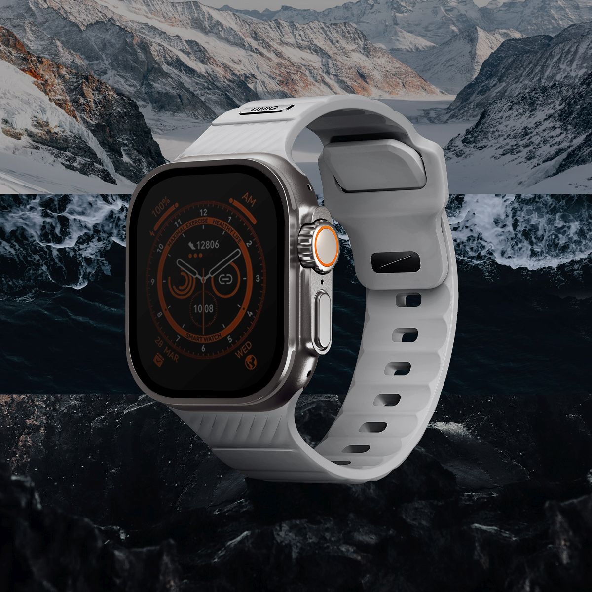 UNIQ Stride FKM řemínek pro Apple Watch 49/46/45/44 mm Chalk grey